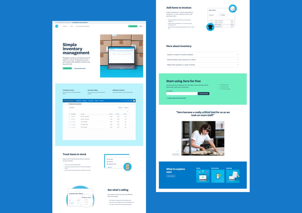 Xero's out of date dotcom property wasn't keeping pace with modern, accessible and functional websites. In collaboration with Today Design a framework was created that was then populated with on-brand Xero assets and page layouts.